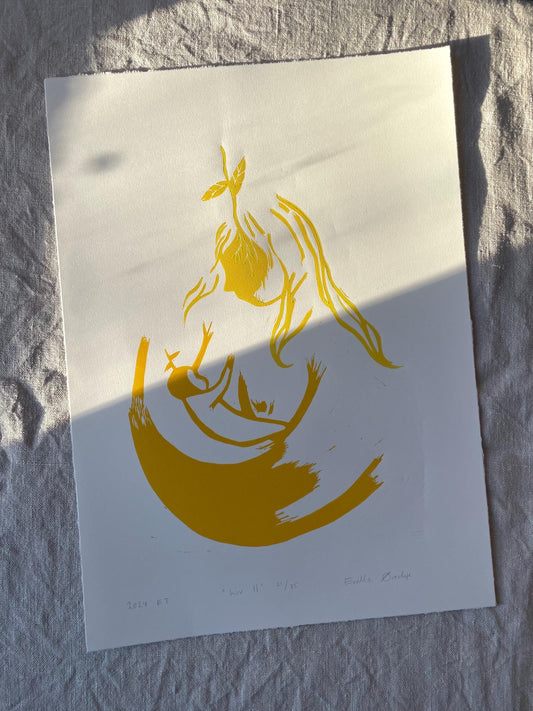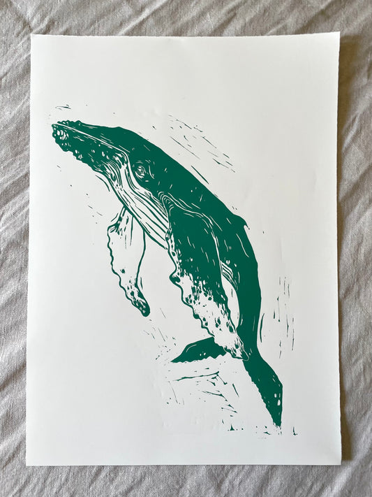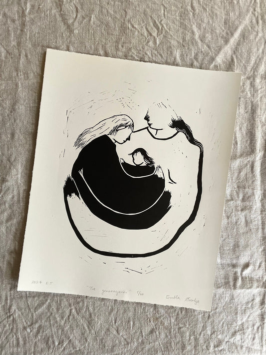 Liv II - grønn/svart- Originalt linosnitt - 10% av inntekt per trykk går til Ammehjelpen
