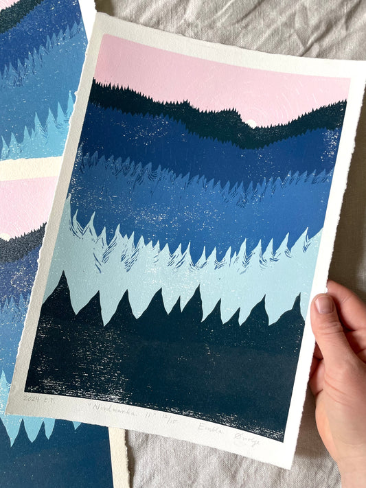 Vinterskog - Originalt reduksjonstrykk med 6 lag