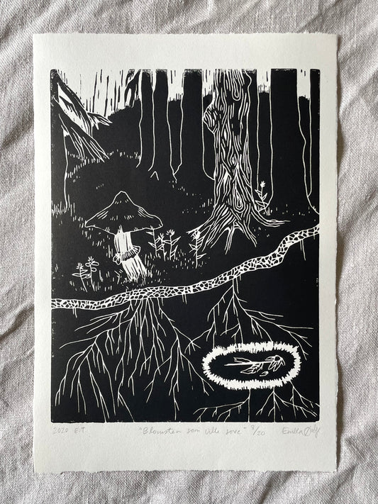 *Innrammet* Blomsten som ville sove - Originalt linosnitt