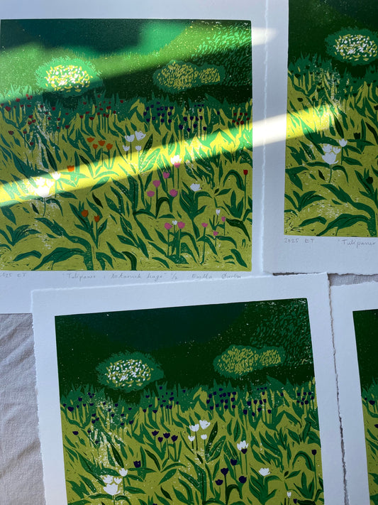 Tulipaner i botanisk hage - Originalt reduksjonstrykk med 5 lag