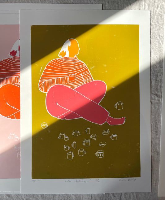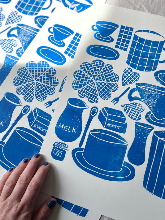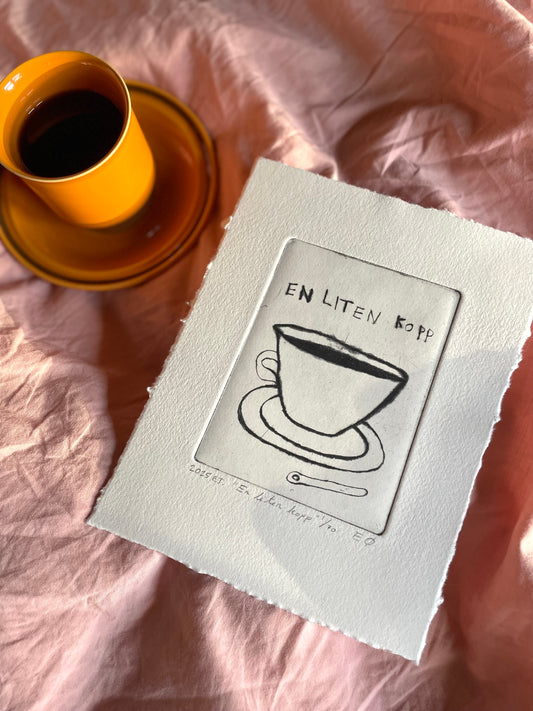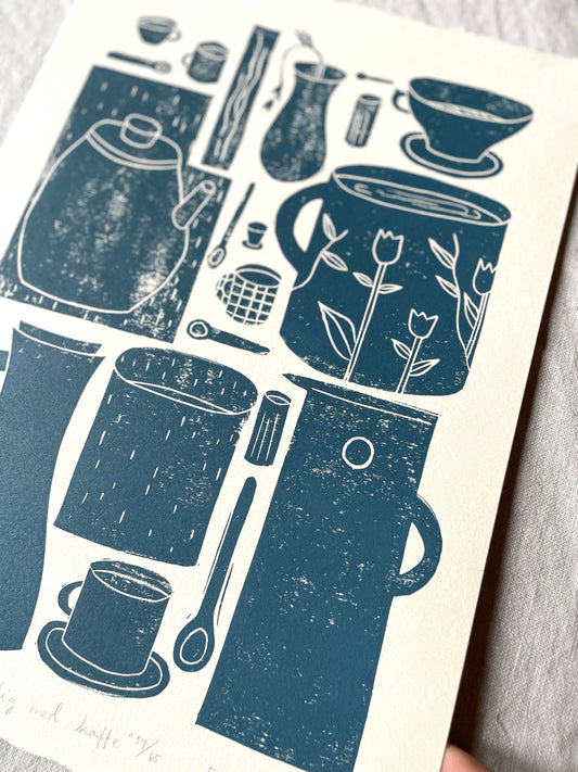 Hyggelig med kaffe - flere farger - Originalt linosnitt