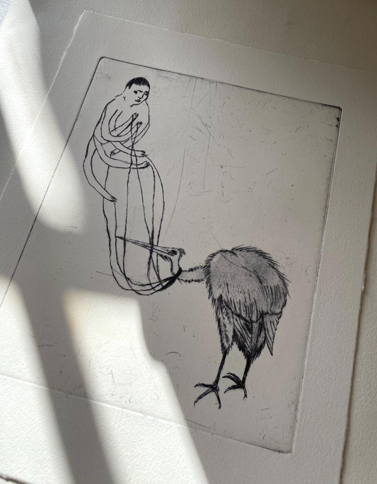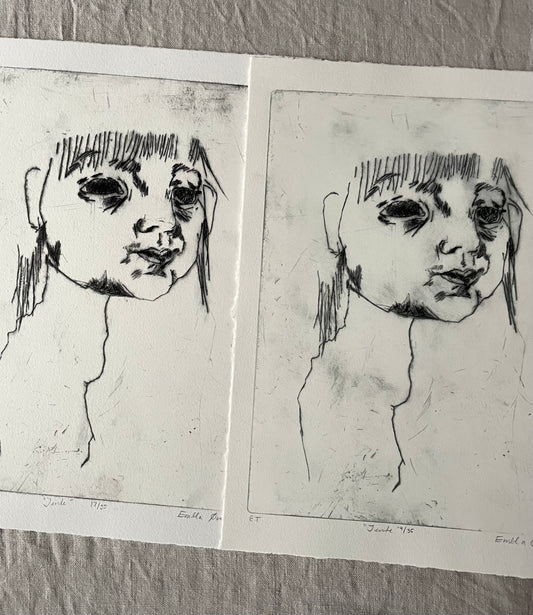 Trykket for hånd med dyptrykkspresse på Norske Grafikeres Verksted i Oslo.