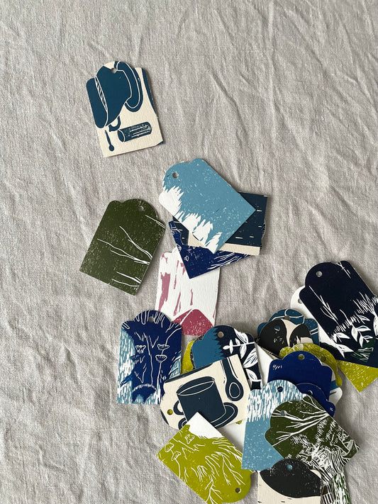 Pakke med 12 stk gavelapper laget av prøvetrykk