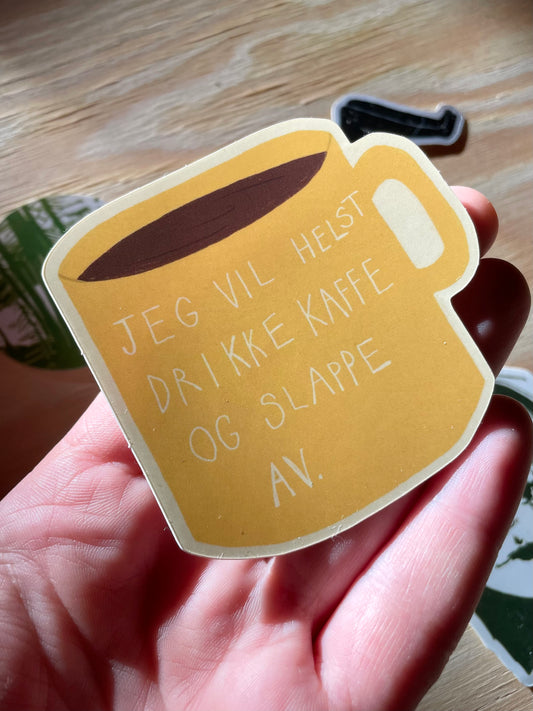 Klistremerke gul "Kopp" i Vinyl basert på print av Embla Øverbye