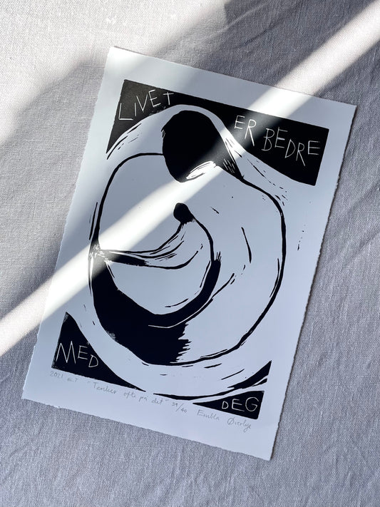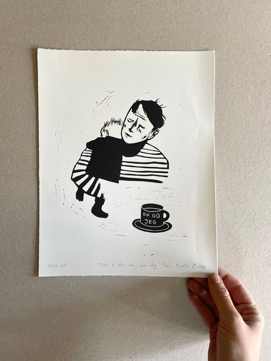 Tenker ofte på det - blå/svart - Originalt linosnitt