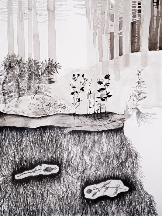 Laying on Roots - Giclée-trykk av original tegning - A4/A3