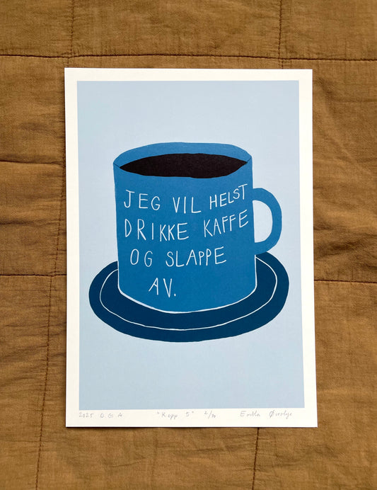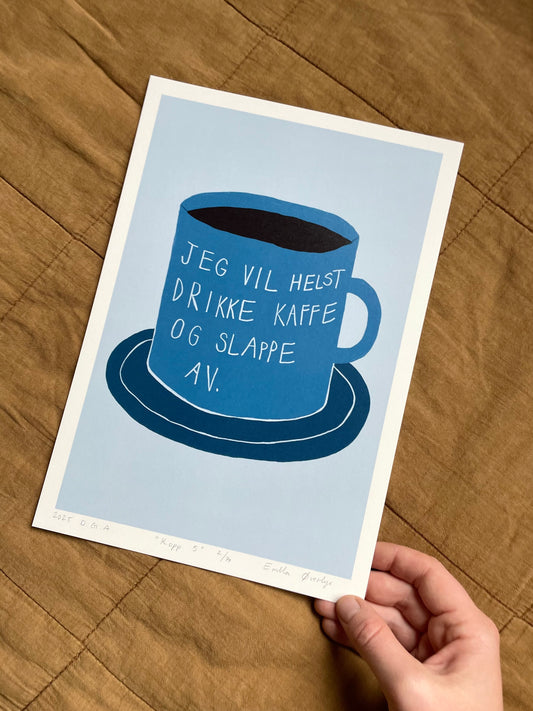 Hyggelig med kaffe - flere farger - Originalt linosnitt