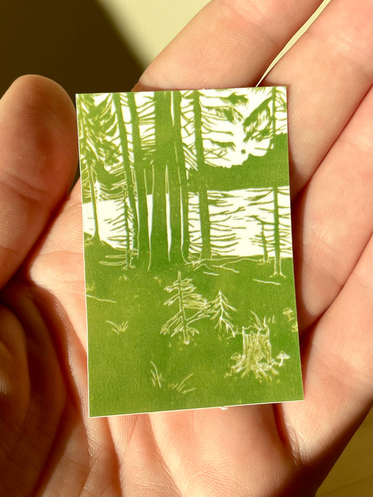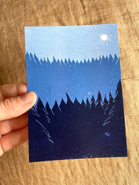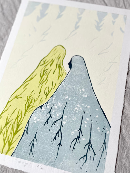 Vinterskog - Originalt reduksjonstrykk med 6 lag (linosnitt)
