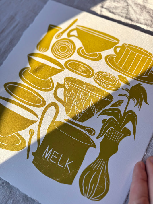 Teller kaffekopper - Originalt linosnitt