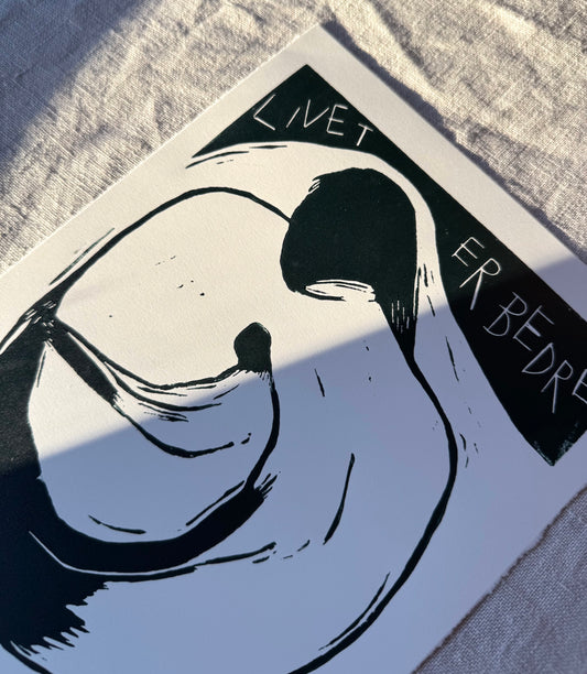Liv - grønn/svart - Originalt linosnitt - 10% av inntekt per trykk går til Ammehjelpen