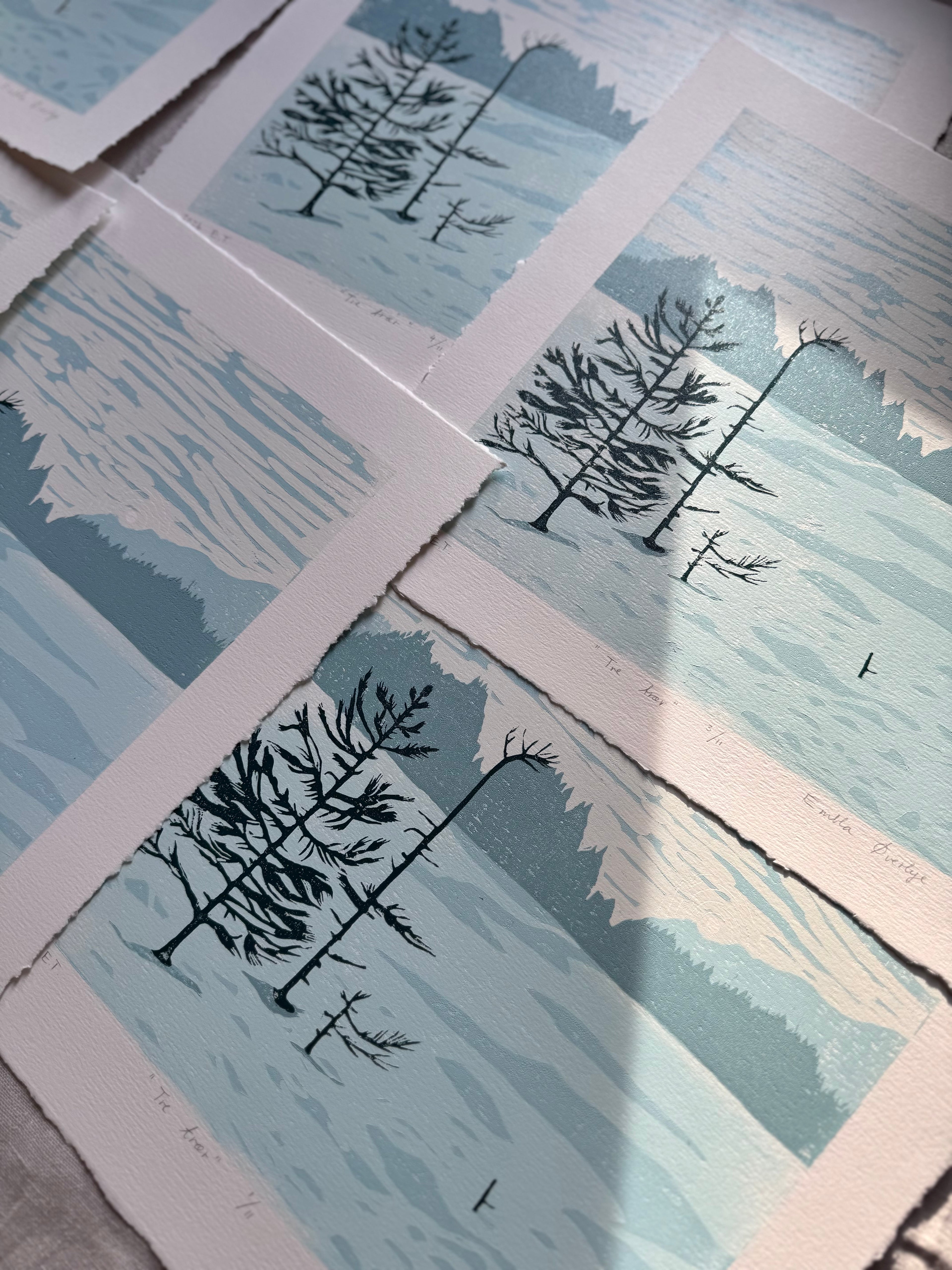 Tre trær - Originalt reduksjonstrykk med 4 lag