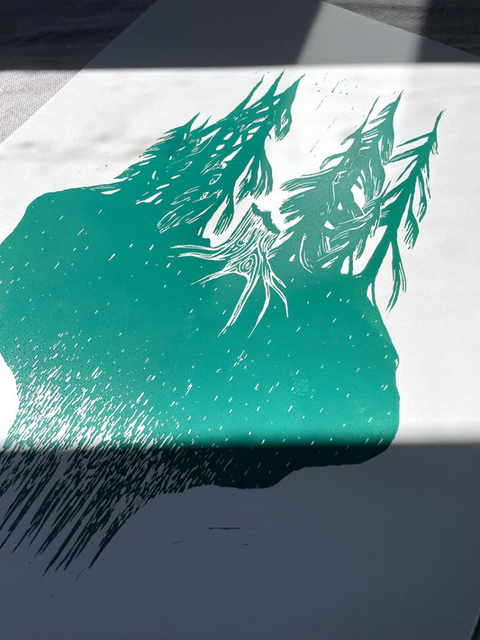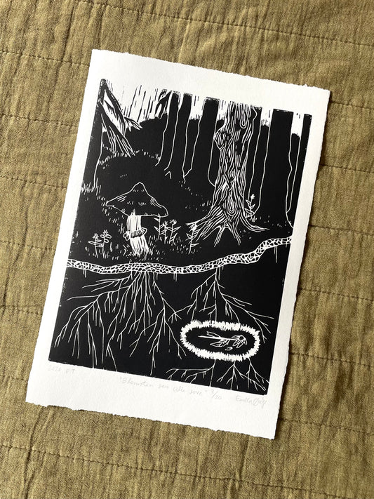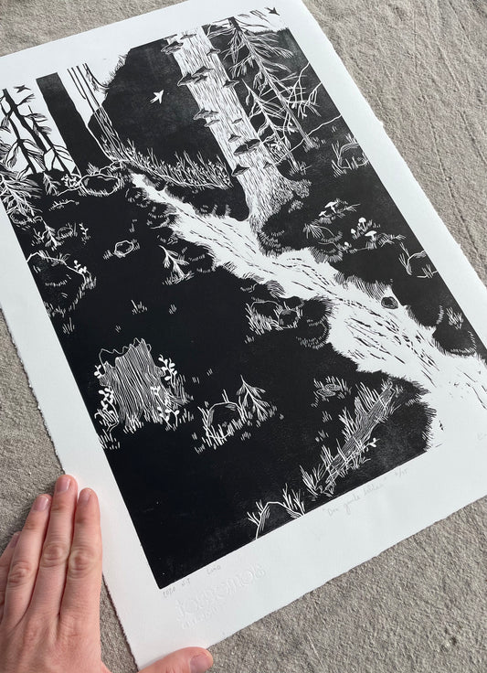 *Innrammet* Skogsjenta - Originalt linosnitt