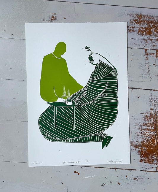 *Innrammet* Hyggelig med kaffe - Originalt linosnitt