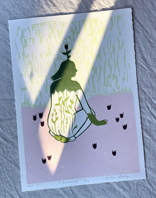 Tulipaner i botanisk hage - Originalt reduksjonstrykk med 5 lag