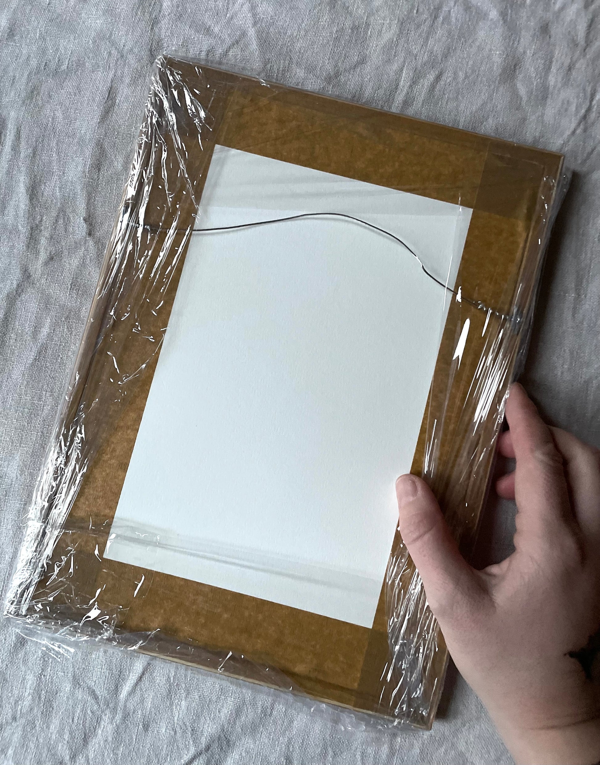 Innrammet med treramme og passepartout.