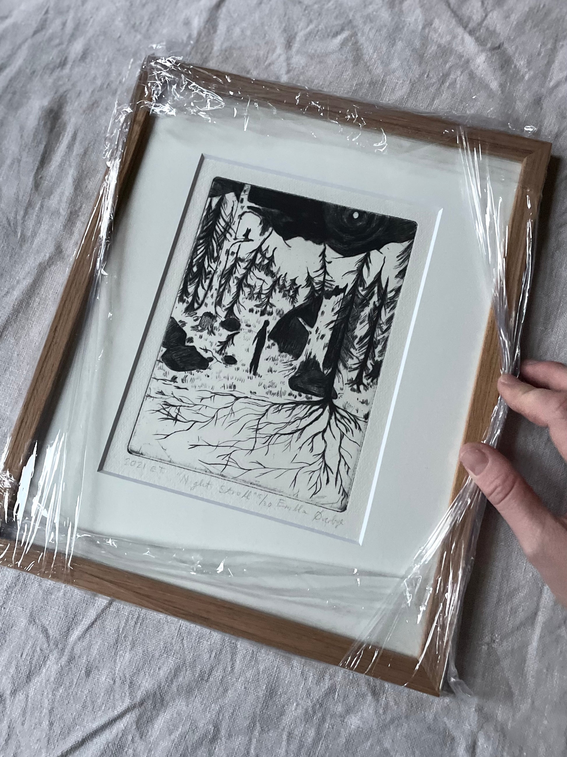 *Innrammet* Night Stroll - Originalt koldnålstrykk