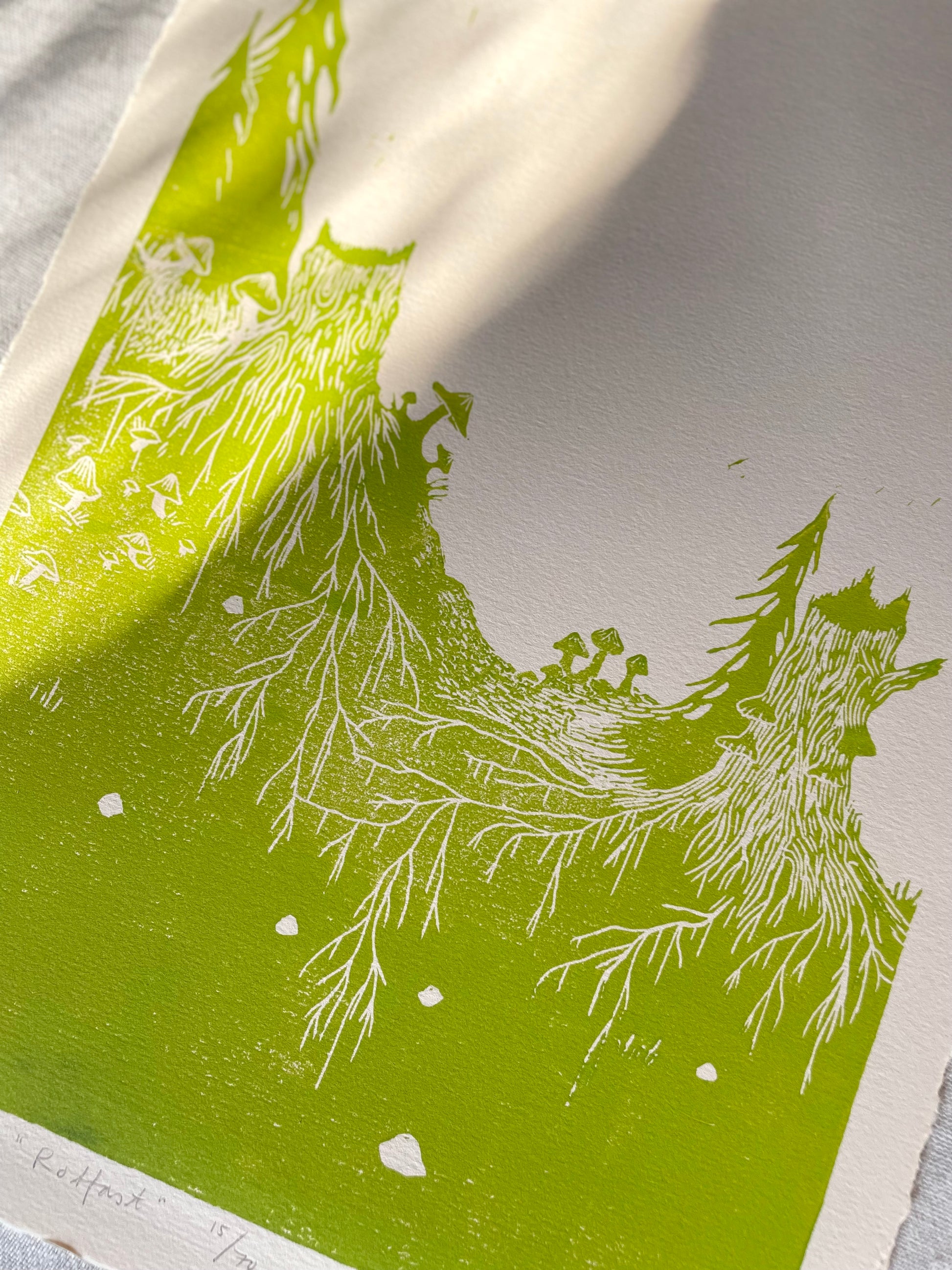 "Rotfast" er et originalt linosnitt đ€